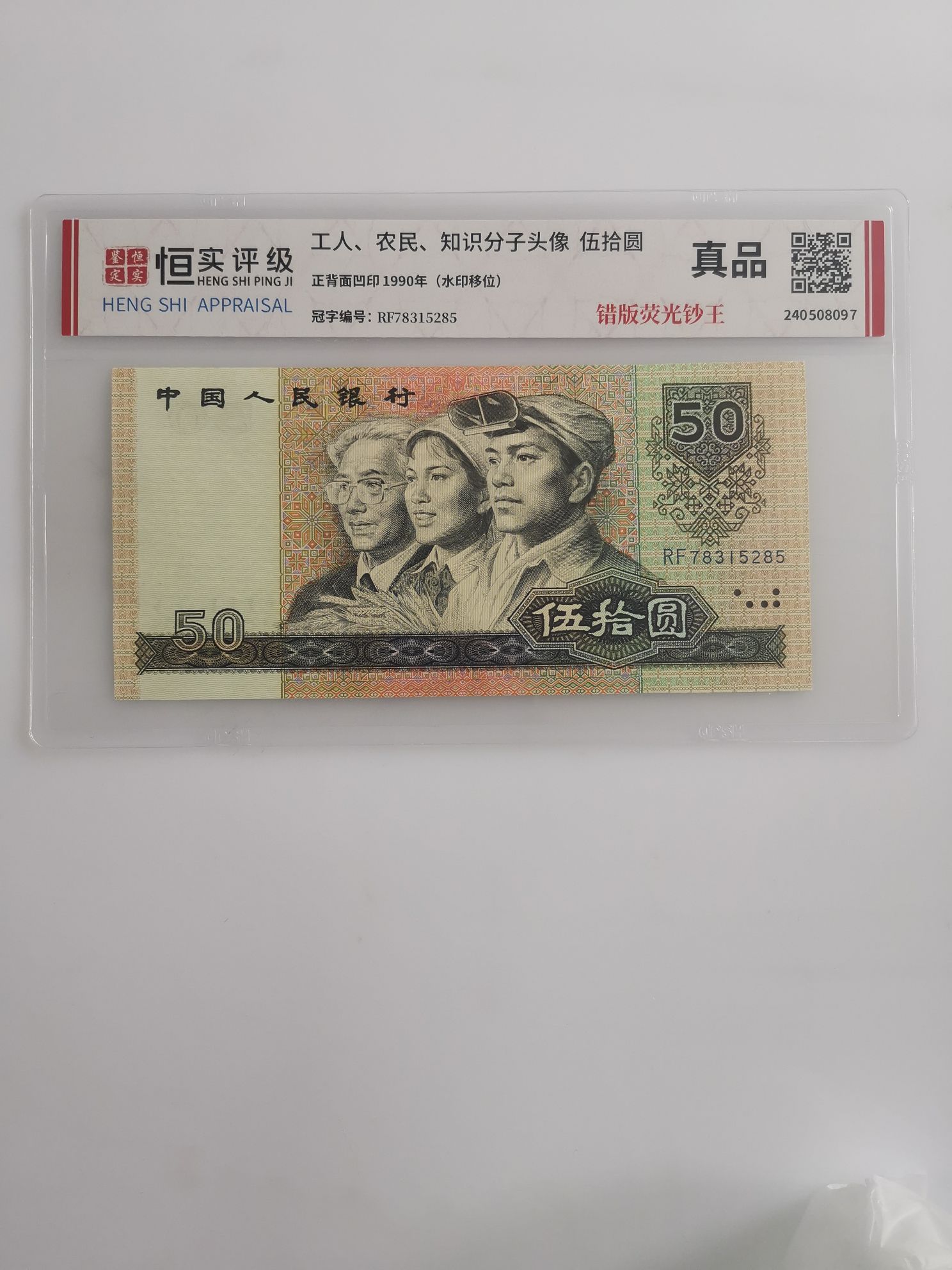 成年份及工艺:正背面凹印 1990年(水印移位)