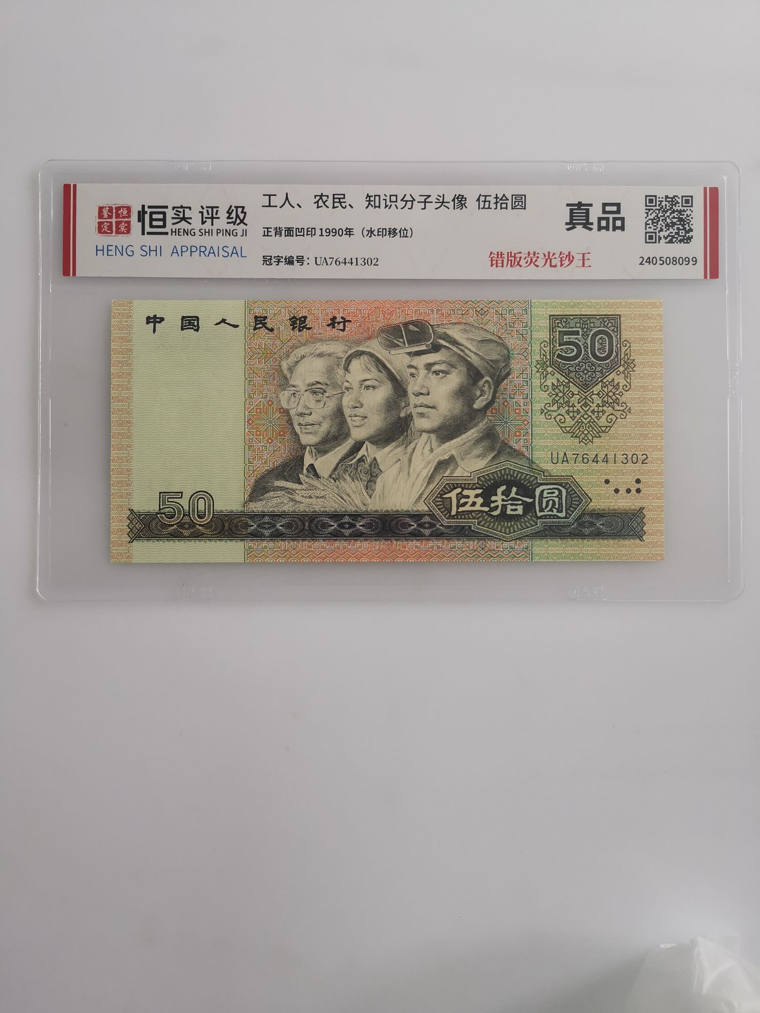 成年份及工艺:正背面凹印 1990年(水印移位)