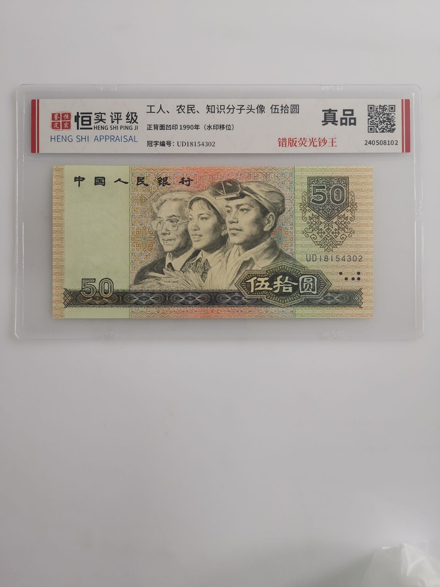 成年份及工艺:正背面凹印 1990年(水印移位)