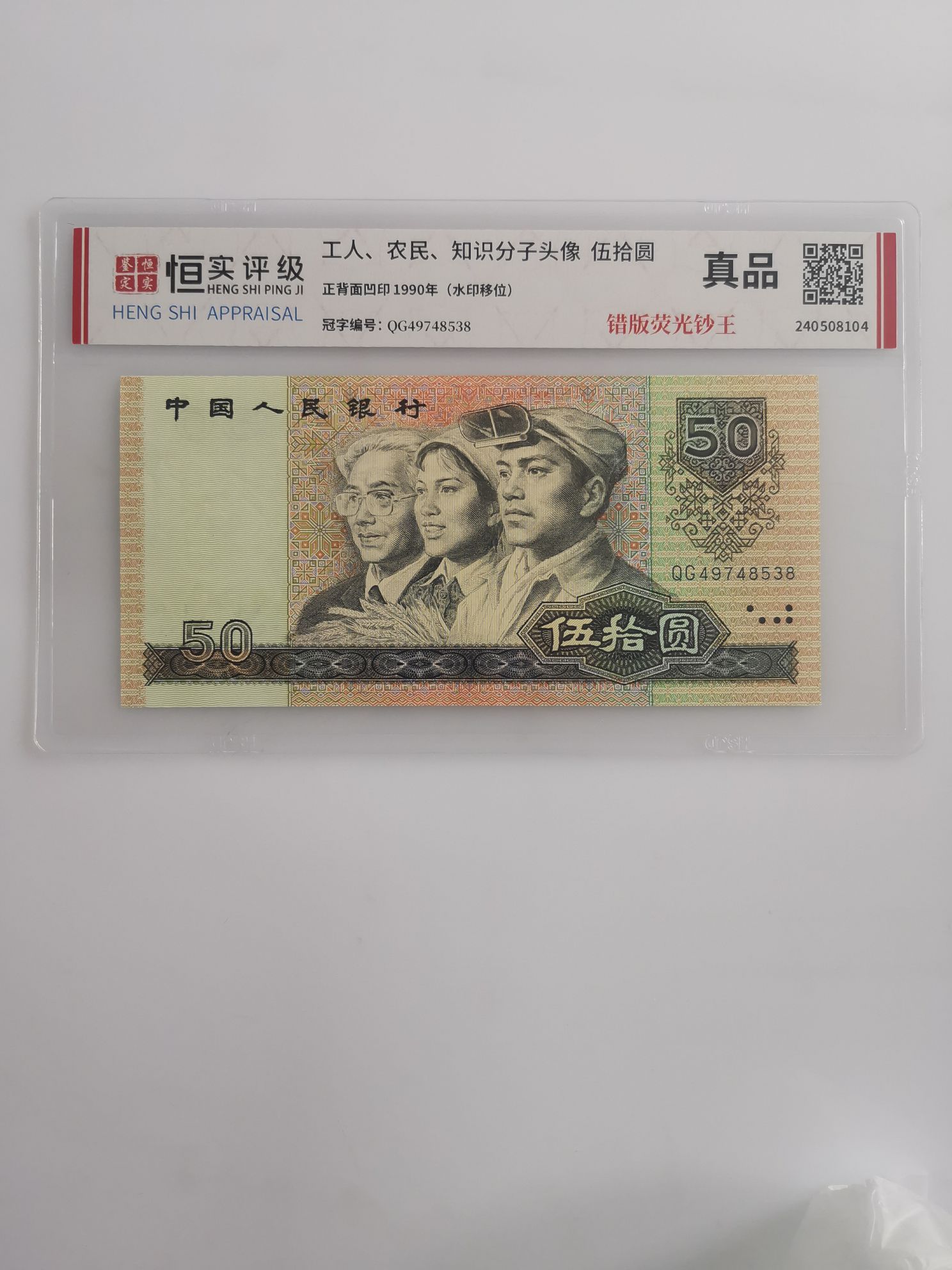 成年份及工艺:正背面凹印 1990年(水印移位)