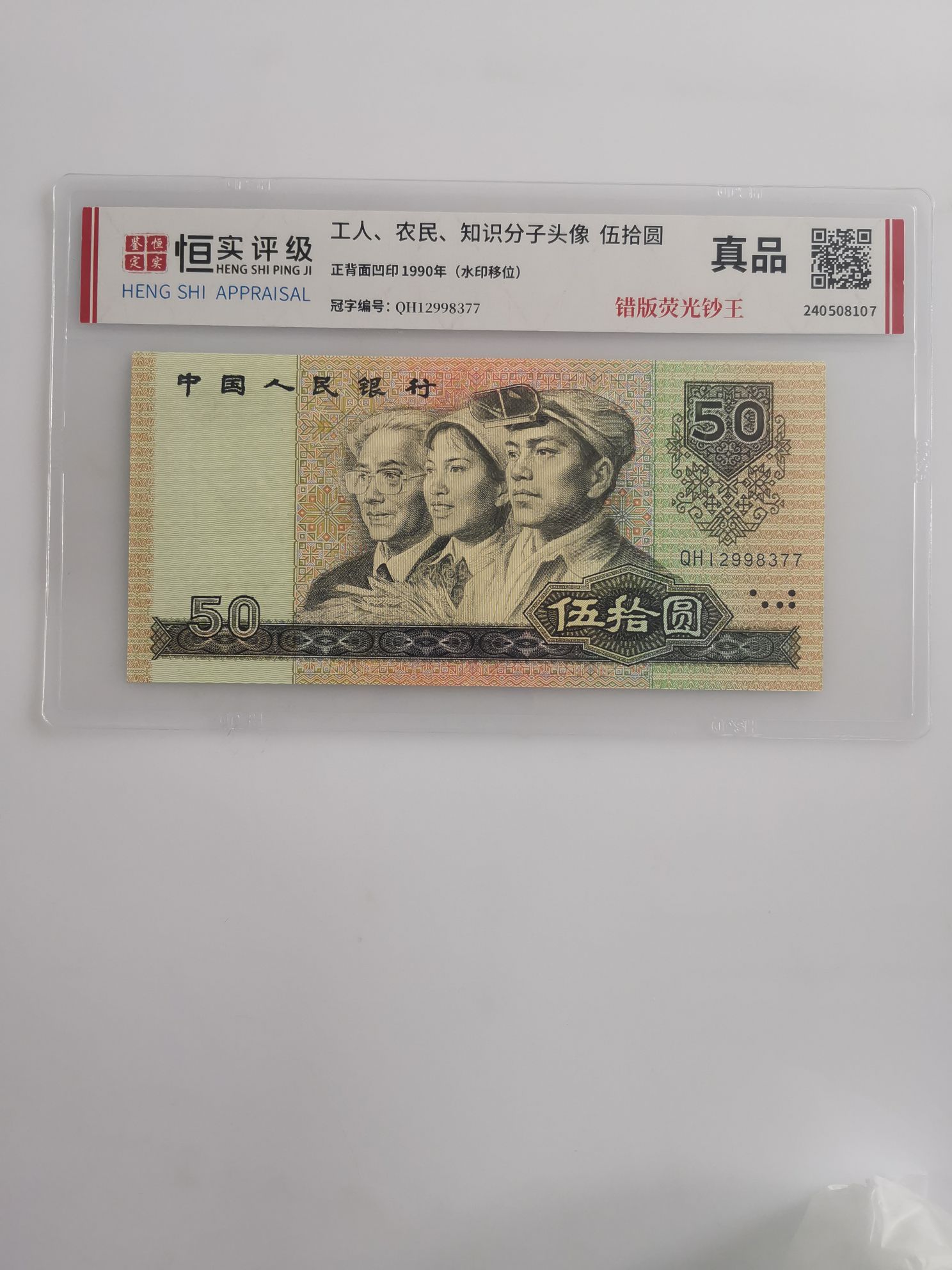 成年份及工艺:正背面凹印 1990年(水印移位)