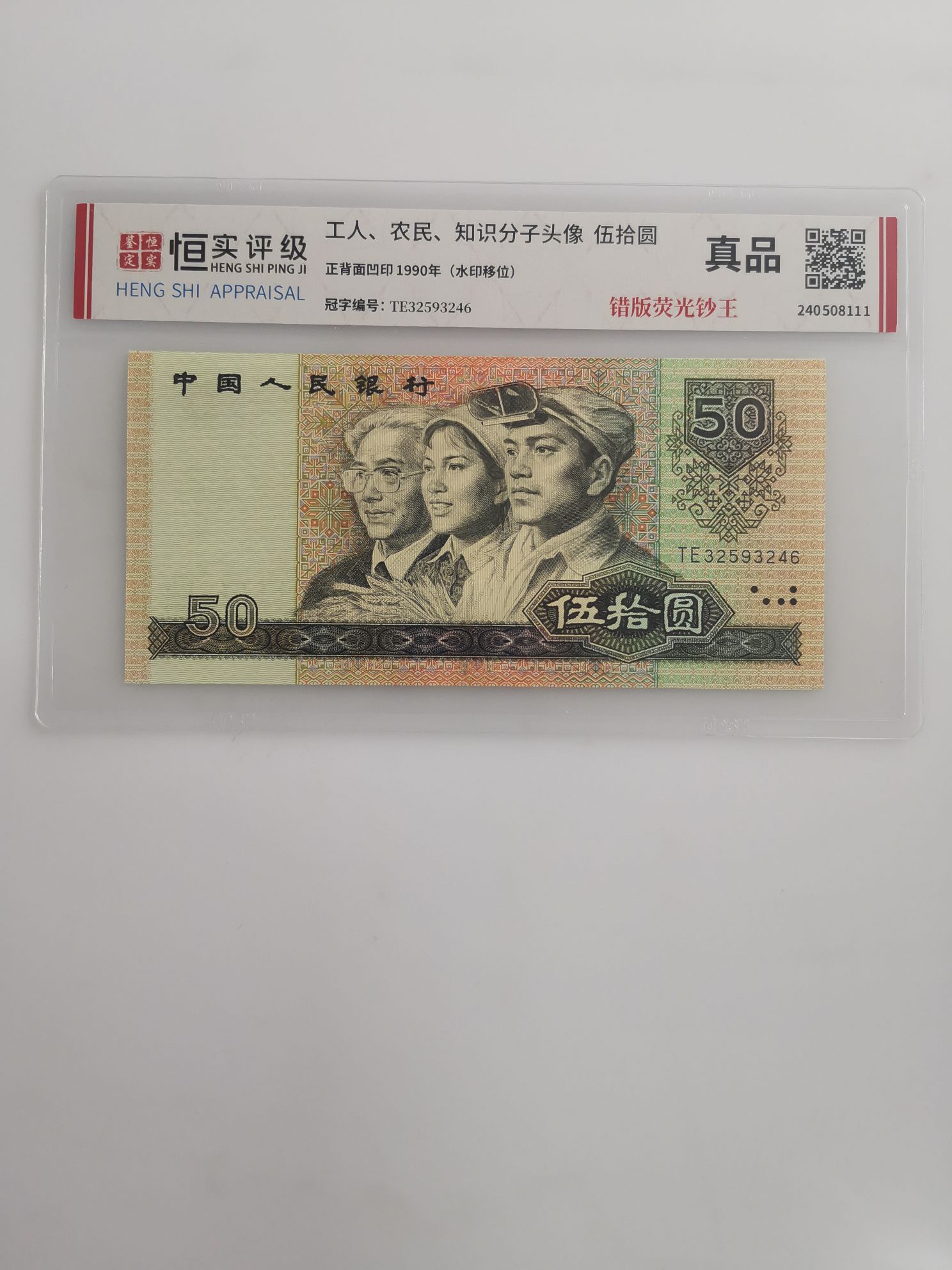 成年份及工艺:正背面凹印 1990年(水印移位)