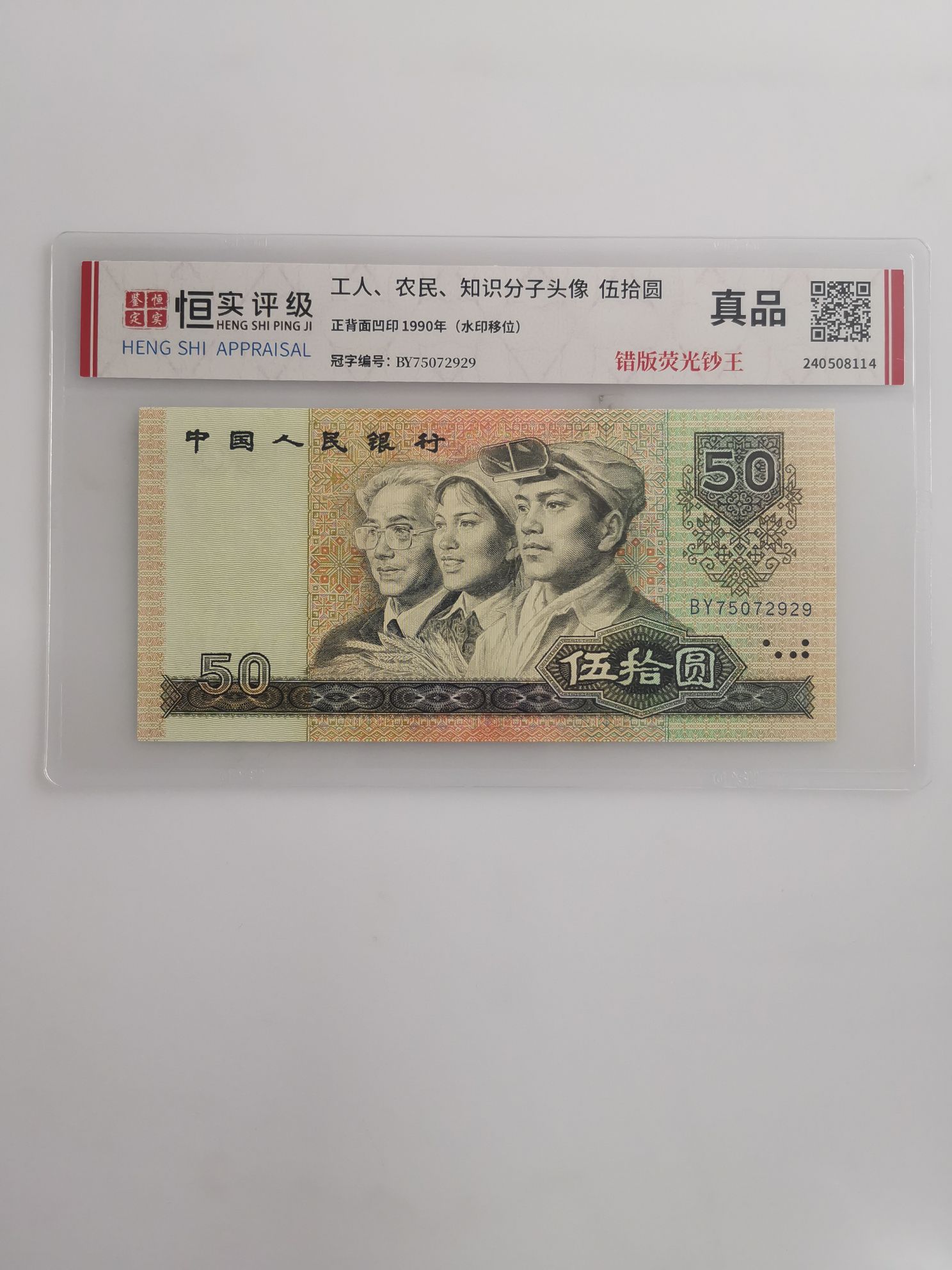 成年份及工艺:正背面凹印 1990年(水印移位)
