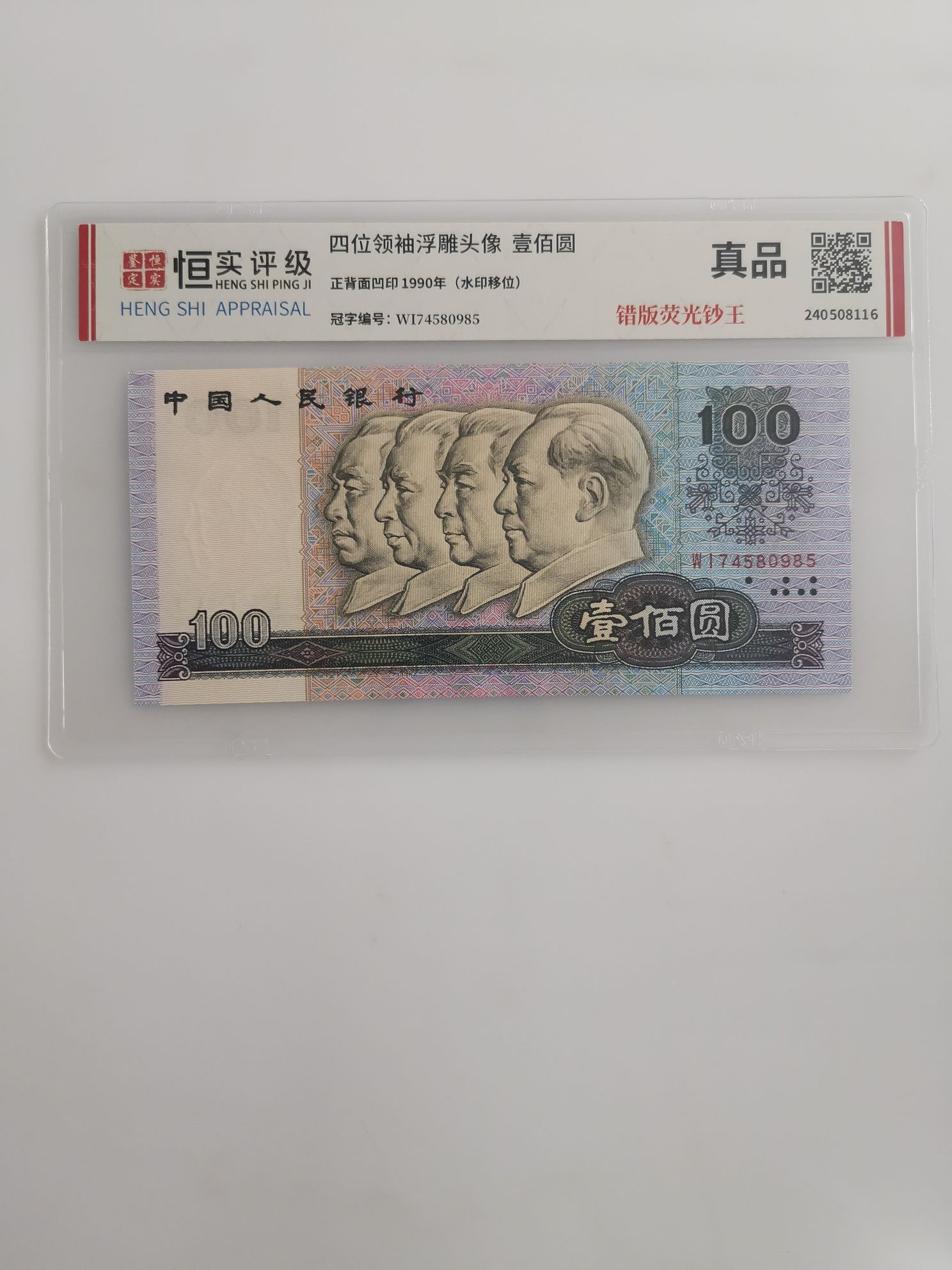 成年份及工艺:正背面凹印 1990年(水印移位)