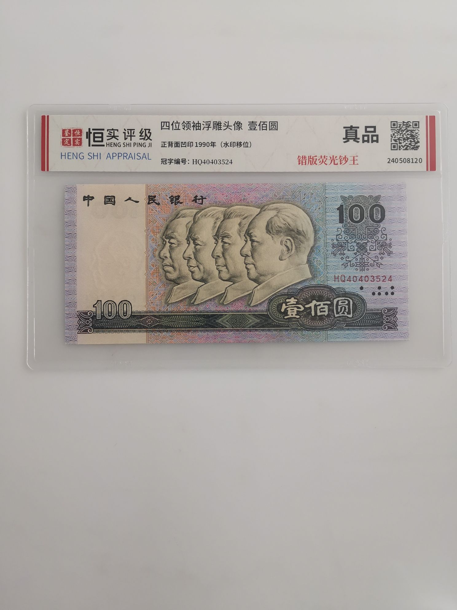 成年份及工艺:正背面凹印 1990年(水印移位)