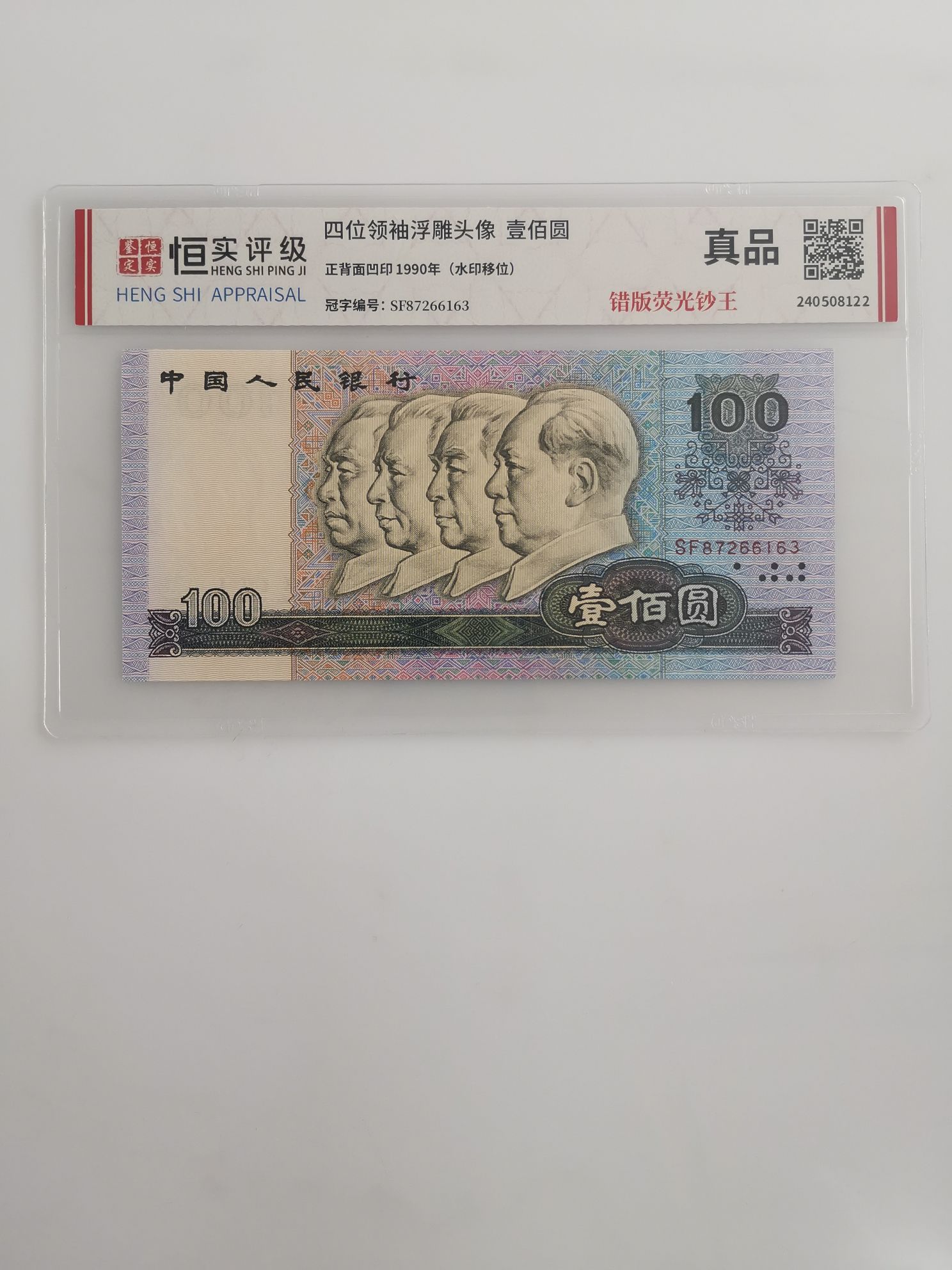 成年份及工艺:正背面凹印 1990年(水印移位)