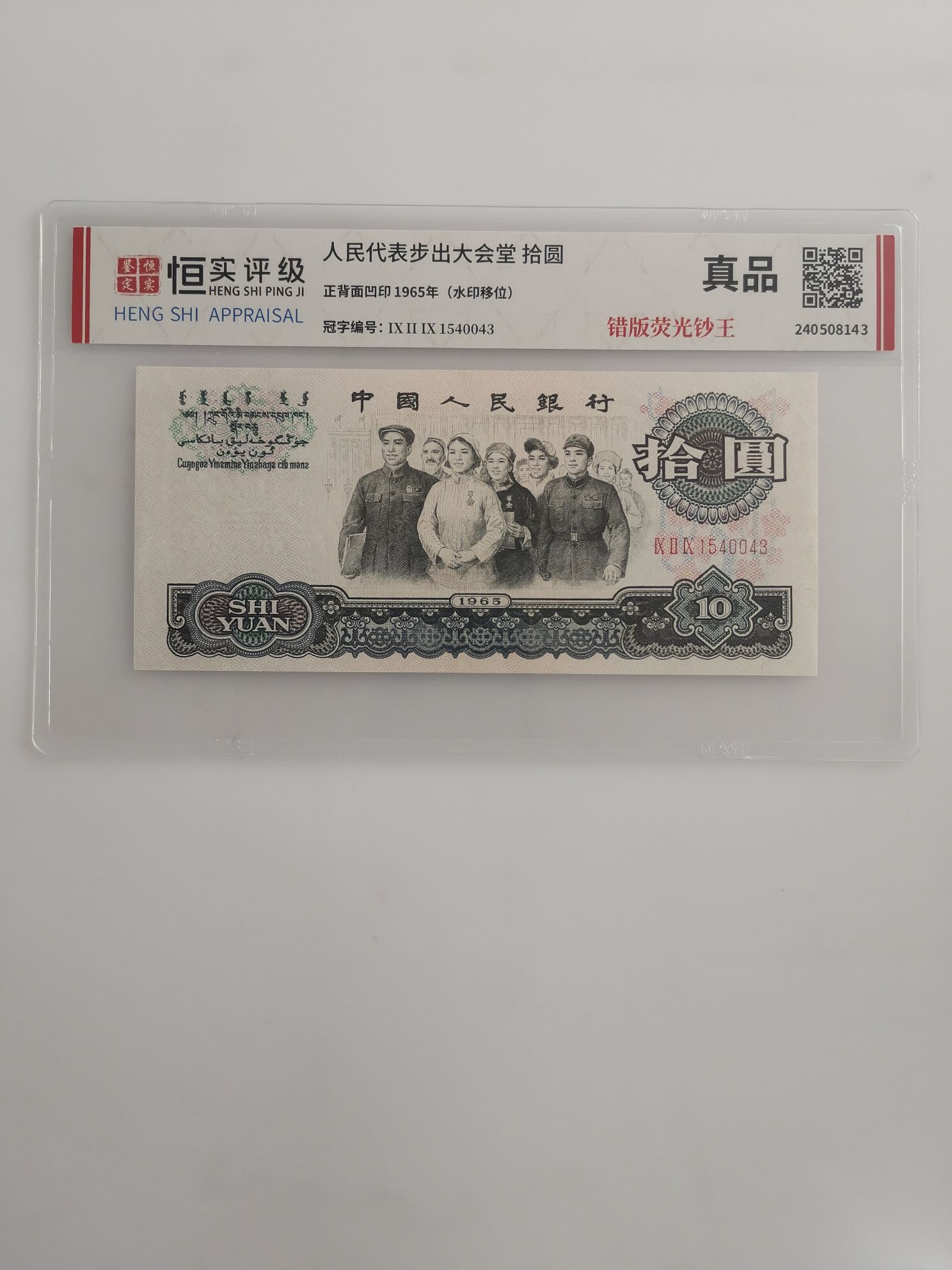 成年份及工艺:正背面凹印 1965年(水印移位)