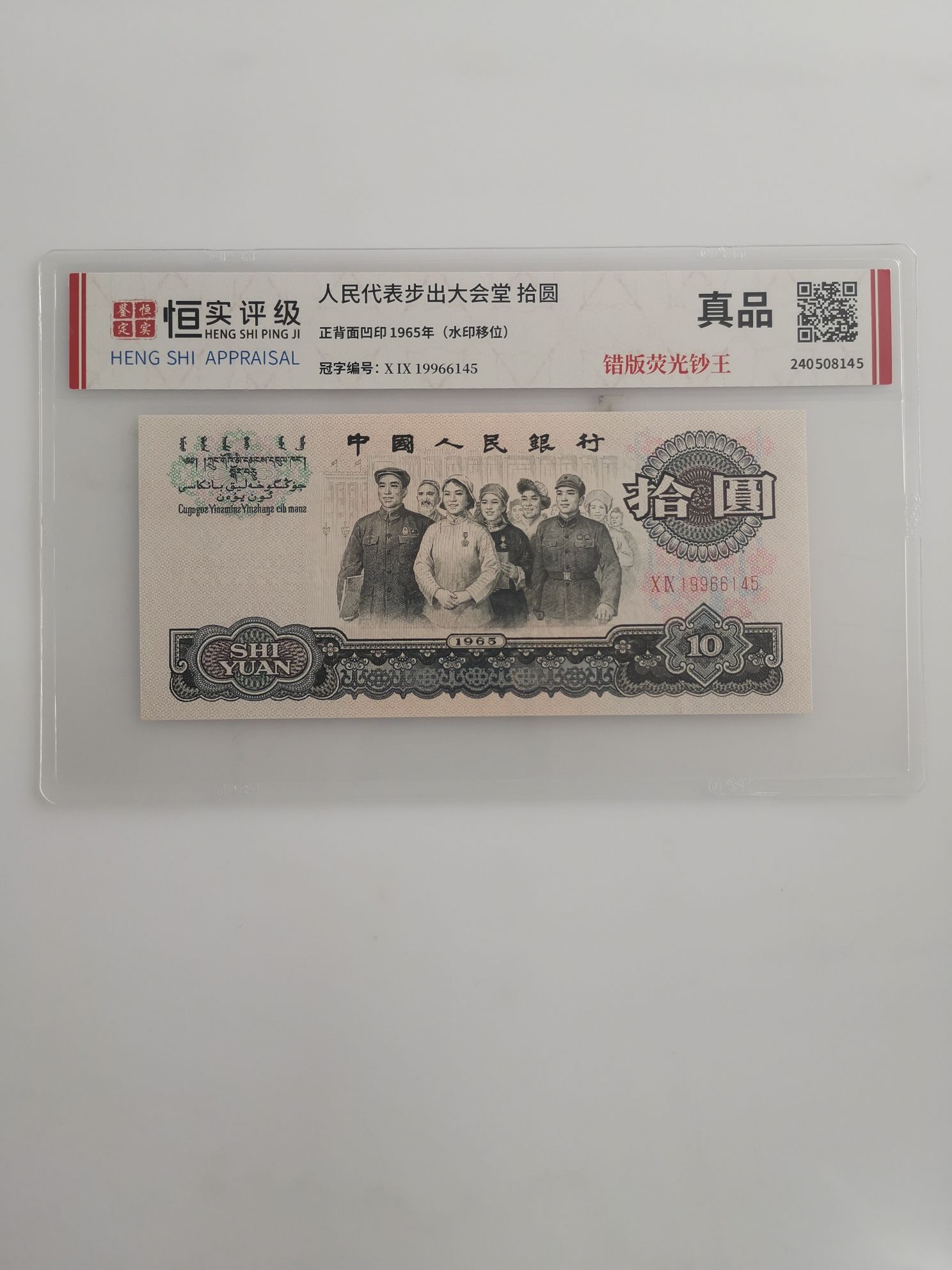 成年份及工艺:正背面凹印 1965年(水印移位)