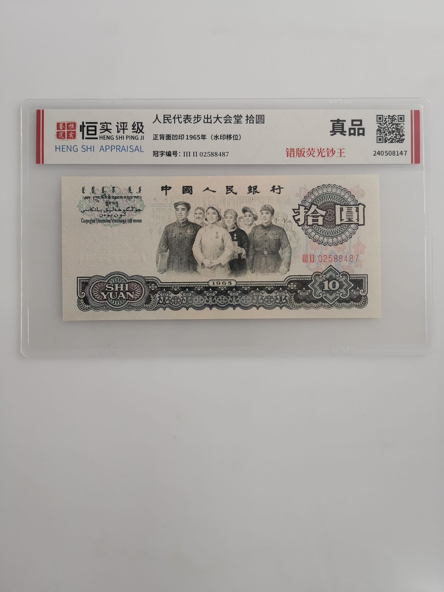 成年份及工艺:正背面凹印 1965年(水印移位)
